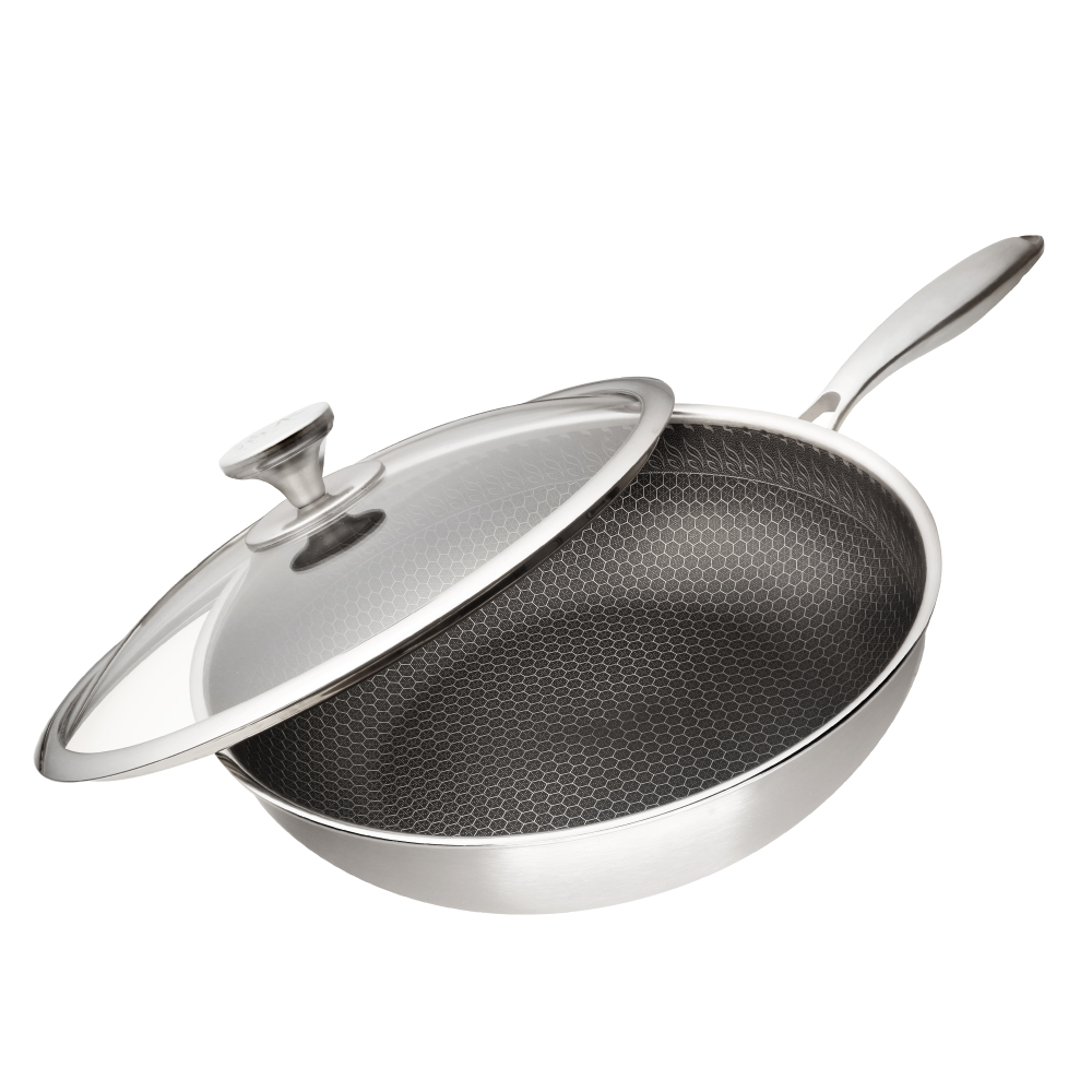 ※獨特晶狀不鏽鋼網,將鍋鏟與不沾塗層隔離,克服一般不沾鍋的弱點,比一般不沾鍋耐刮耐磨。