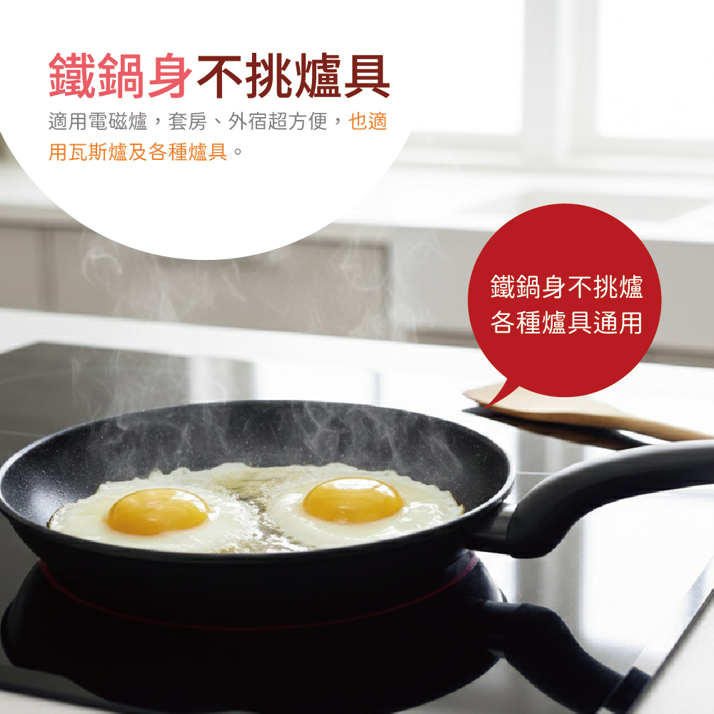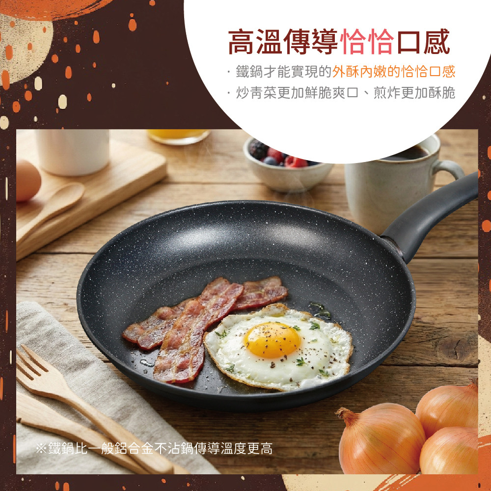 ※鐵製鍋身高溫傳導,煎出一般不沾鍋無法呈現的外酥內嫩口感。